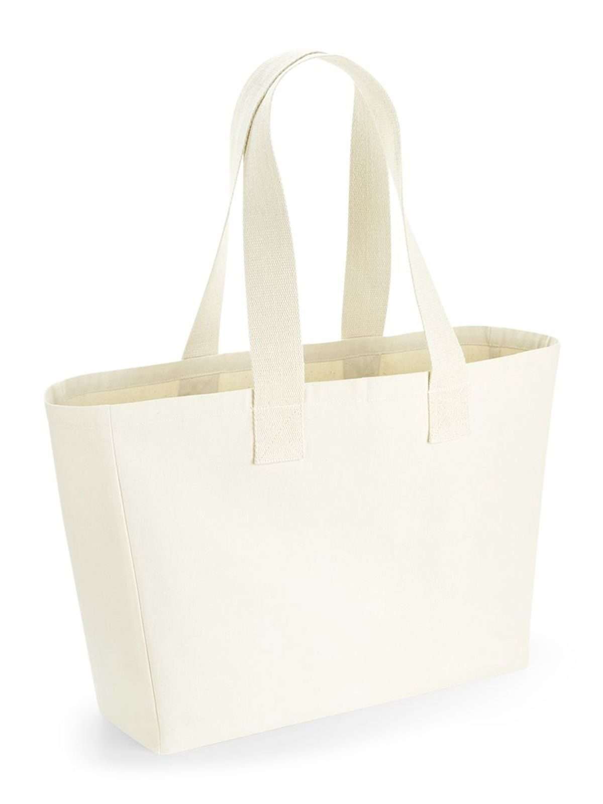 100% cotone canvas. Borsa portabile a mano o a spalla, in stile oversize, con manici in morbida fettuccia ed etichetta removibile. Lunghezza manici: 83 cm, dimensioni: 43x 34,5x 13,5 cm, capacità: 24 lt.