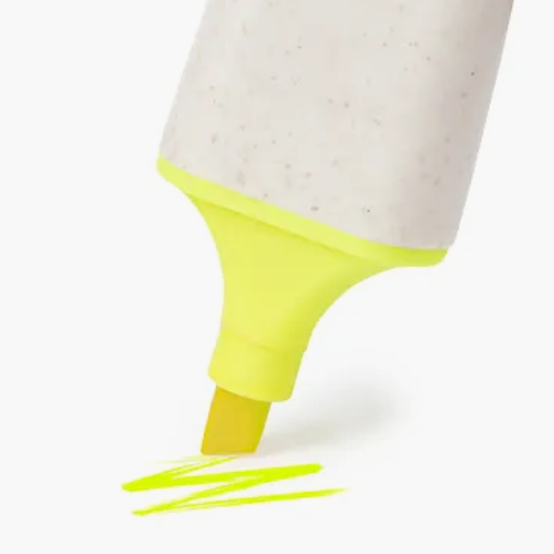 Evidenziatore fluorescente a 3 colori con corpo triangolare in canna di grano, finitura morbida e brillante. Cappucci opachi. Prodotto eco-friendly che riduce emissioni inquinanti.