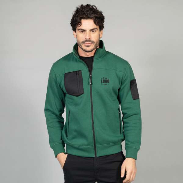 Felpa Uomo in Cotone e Poliestere Full Zip con Taschino sul Braccio e Petto Personalizzata Ideale come Capo Promozionale- Giacarta Man