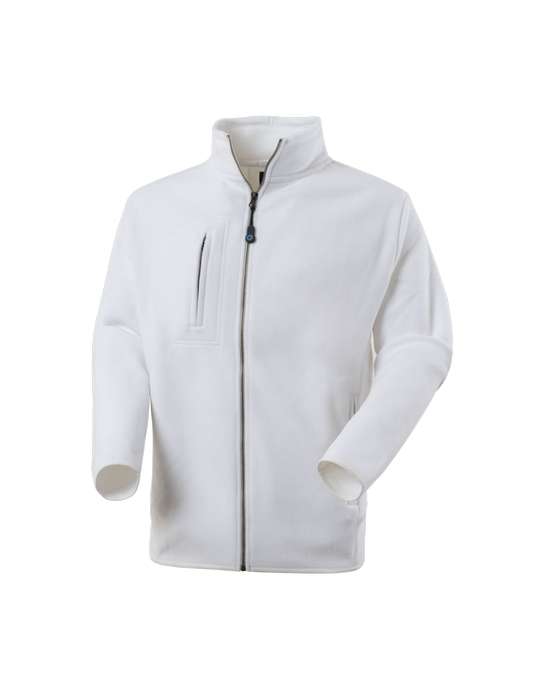 Pile con collo alto con zip centrale aperta fino al fondo. Un taschino a filetto al petto destro con chiusura con zip verticale, due tasche inferiori interne chiuse con zip, polsi e girovita con bordo di colore a contrasto in tutte le varianti tranne 02-bianco e 05-nero. *** Dalla S solo per 02-bianco, 05-nero, 12-grigio ***