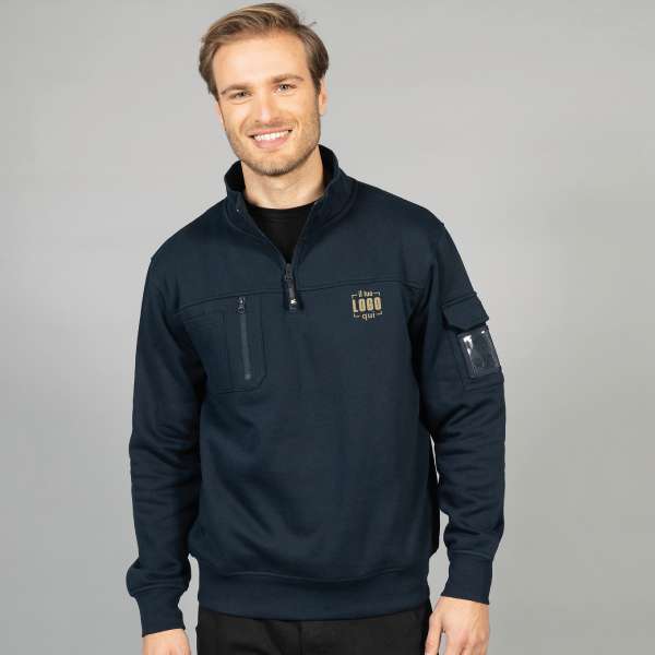 Felpa in Cotone Uomo Collo Lupetto Mezza Zip e Multitasche Personalizzata Perfetta come Capo da Lavoro-Hong Kong