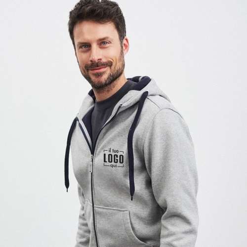 Felpa Sportiva Uomo con Interno Felpato, Full Zip, Cappuccio Poliestere e Cotone Personalizzata Ideale come Articolo Sport