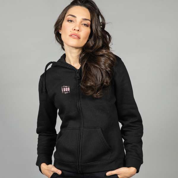Felpa Donna Full Zip con Cappuccio in Tessuto Sgarzato Leggero Personalizzata per il Tempo Libero-NEBRASKA LADY