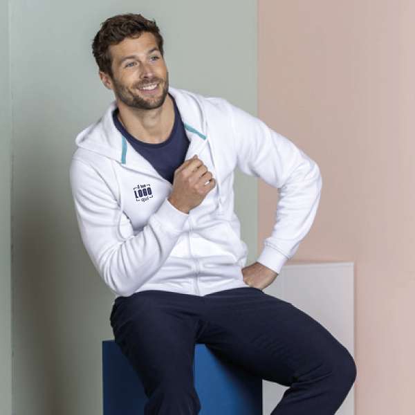 Felpa in Tessuto Organico Certificato da Uomo, Full Zip con Cappuccio Personalizzata Perfetta come Capo Promozionale Sostenibile