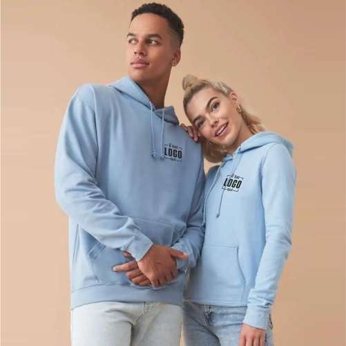 Felpata internamente in poliestere ed esterno 100% cotone per una migliore stampabilità. Etichetta taglia tessuta al collo ed etichetta laterale strappabile con logo, composizione e istruzioni di lavaggio.