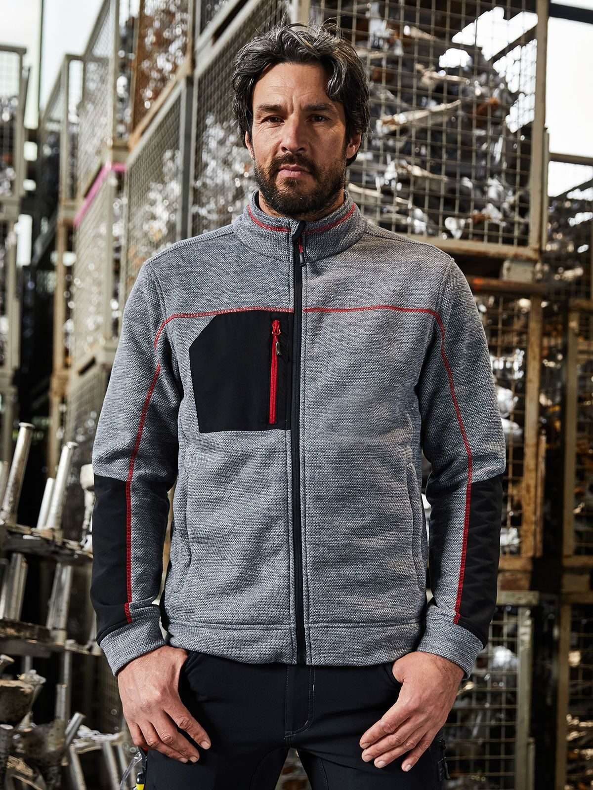 80% poliestere riciclato, 20% poliestere. Giacca in pile mélange easy-care, morbida e calda, felpata internamente, 2 tasche laterali con zip, 2 tasche interne, taschino sul petto con zip e cuciture a contrasto, colletto alto, zip frontale con protezione per il mento, zip: YKK.