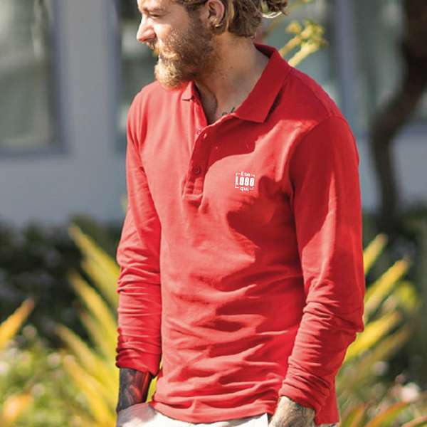 Polo Uomo Manica Lunga in Cotone Piquè di Alta Qualità Personalizzata Ideale come Capo Tempo Libero-FLORENCE-PAYPER