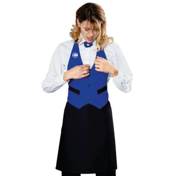 Il grembiule corto unisex, nei toni eleganti del nero e blu cina, è perfetto per chi desidera un look raffinato e professionale. Caratterizzato da una finta gilet frontale con bottoni decorativi, unisce stile e praticità. Le due ampie tasche in vita offrono spazio utile per il servizio, mentre l’allacciatura regolabile dietro al collo garantisce comfort e vestibilità ottimale. Ideale come divisa da lavoro per cantine, bar, enoteche, bistrot e sommelier, è un accessorio distintivo per ambienti ricercati.