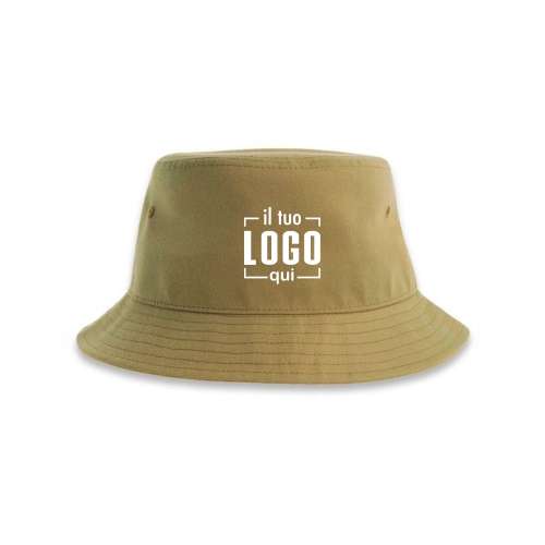 100% poliestere riciclato certificato. Cappello modello pescatore in poliestere riciclato, occhielli ricamati, parasudore in poliestere, etichetta removibile.
