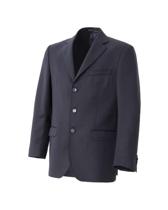 Giacca con chiusura anteriore a tre bottoni, due tasche interne coperte da aletta e un taschino interno al petto, spacchi posteriori.