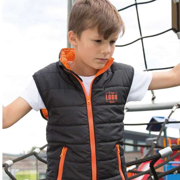 Esterno, imbottitura e rivestimento 100% poliestere. Giacca smanicata con fodera interna e zip di colore contrastante, zip frontale, dettaglio catarifrangente sul fianco, polsini e orlo inferiore, due tasche con zip, facile da comprimere.
