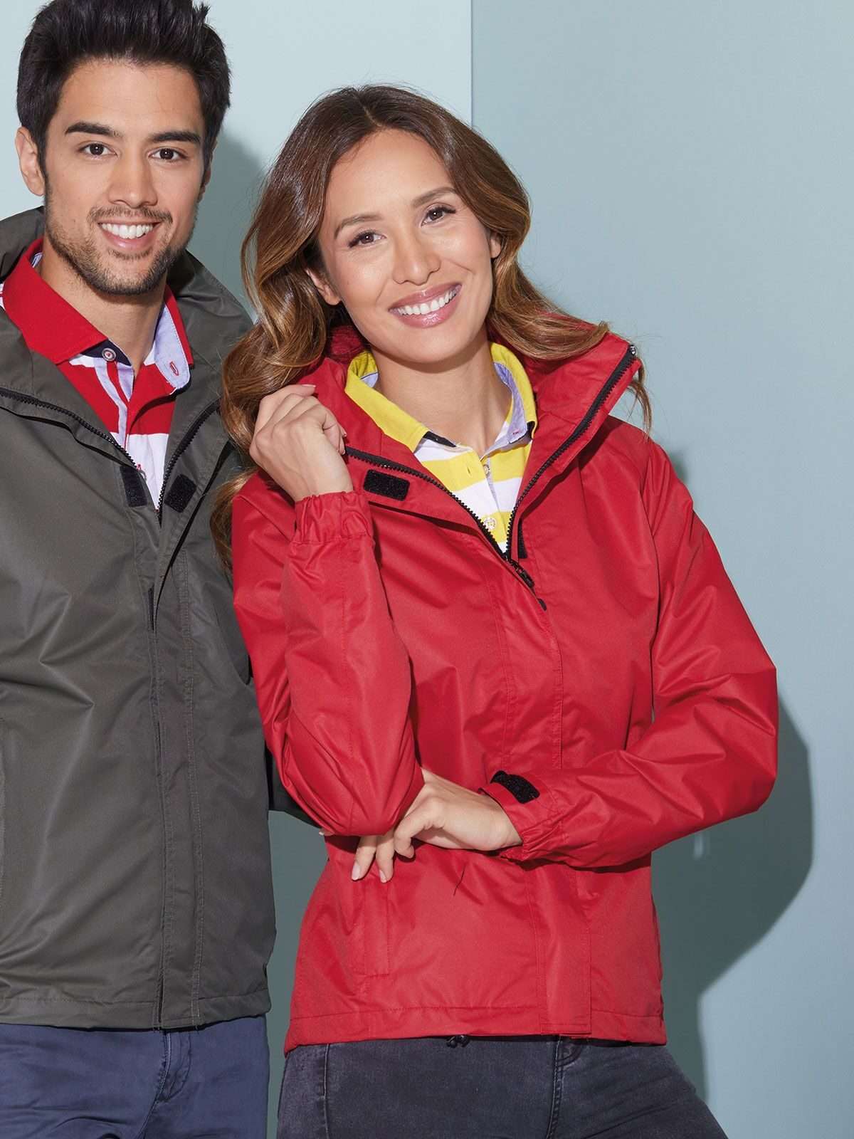 100% poliestere. Giacca funzionale per condizioni meteo estreme, Tessuto antivento e idrorepellente (3.000 mm colonna d'acqua) con strato in PU. Cuciture sigillate, Traspirante e permeabile al vapore (3.000 g/m² /24h), leggermente sciancrata. Colletto con cappuccio integrato, 2 tasche nascoste con cerniera , taschino e tasca interna portacellulare, Cordino elastico con stopper su cappuccio e in vita, Cerniera sulla schiena per ricamo, Tessuto esterno: 100% poliestere, Fodera: 100% poliestere, Fodera in rete, Raglan, Colonna d'acqua 3.000 mm, antivento e idrofugo