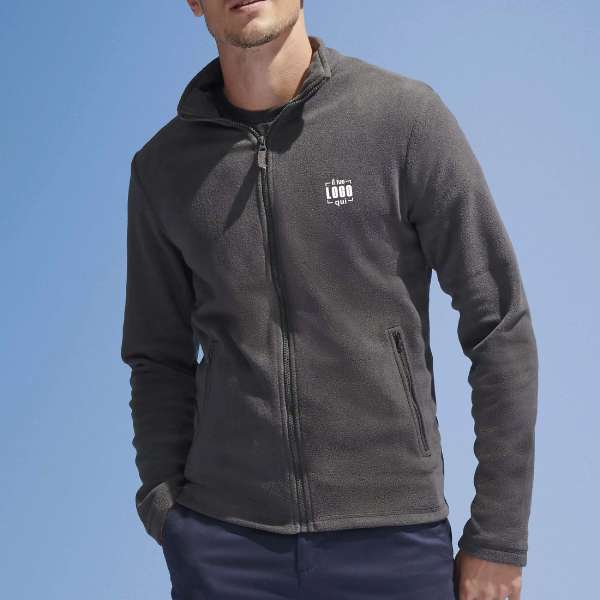 Giacca uomo in pile, collo alto con zip, 2 tasche con zip.