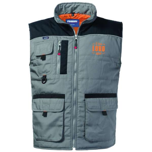 Gilet da Lavoro con Chiusura Anteriore, Antifreddo e Antivento e Multitasche Personalizzato-Rossini