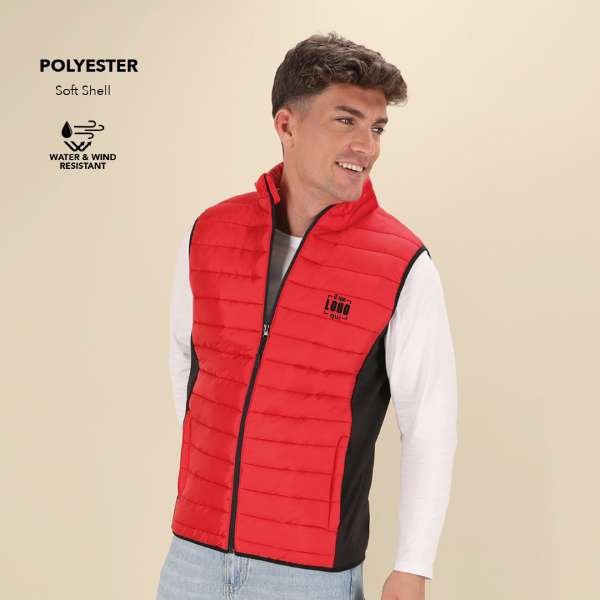 Gilet resistente al vento e all'acqua, in una calda combinazione di materiali soft shell e poliestere, con interno imbottito. Di costruzione elegante e in un'ampia gamma di colori, con dettagli e fianchi neri. Chiusura con cerniera e tasche laterali con cerniera, con tiretti per una facile apertura. Disponibile nelle taglie S, M, L, XL, XXL.