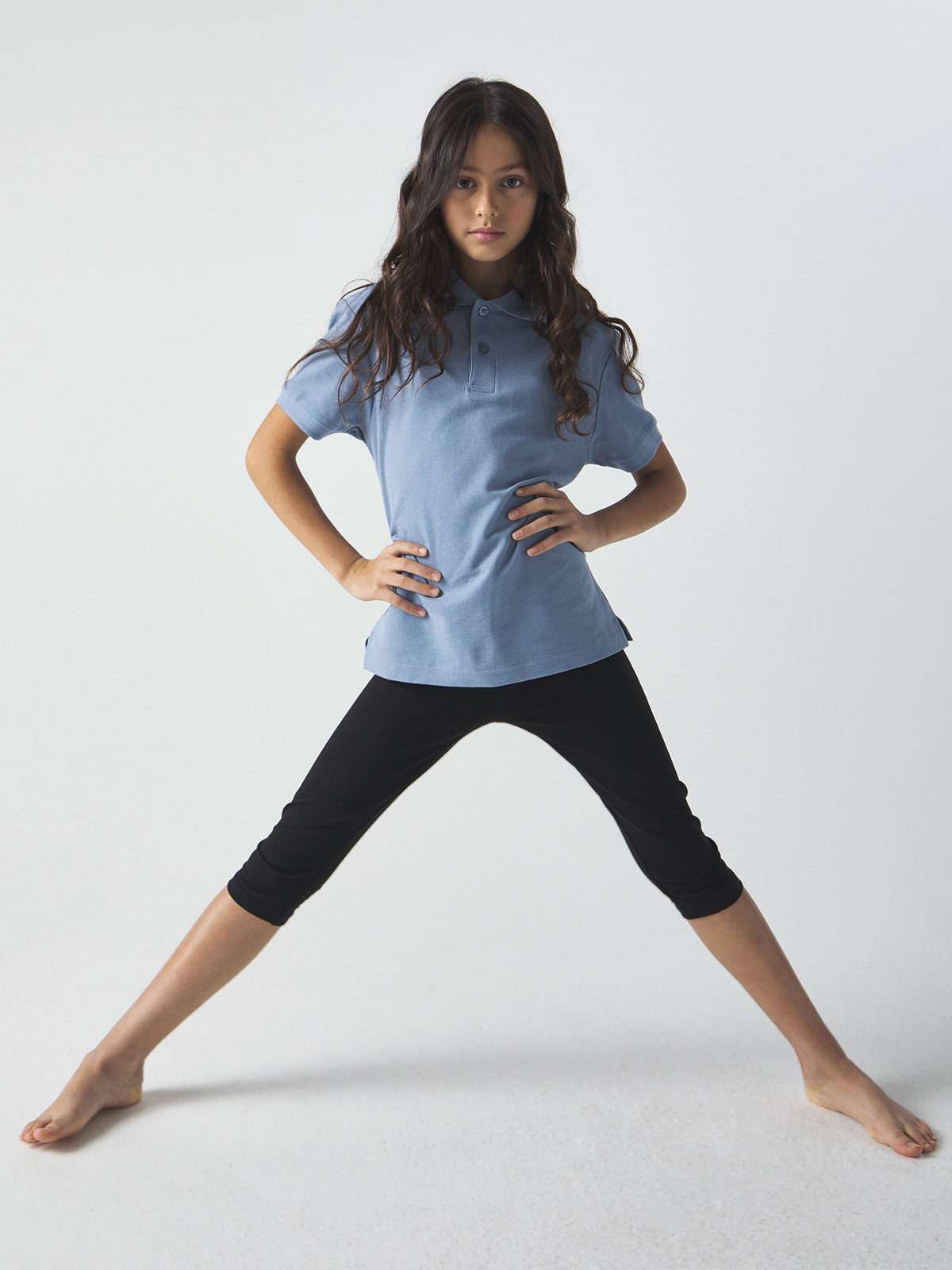 92% cotone, 8% elastane. Leggings al polpaccio da bambina single jersey, vita elasticizzata, vestibilità slim, cuciture a doppio ago, esterno gamba senza cuciture. Etichetta strappabile.