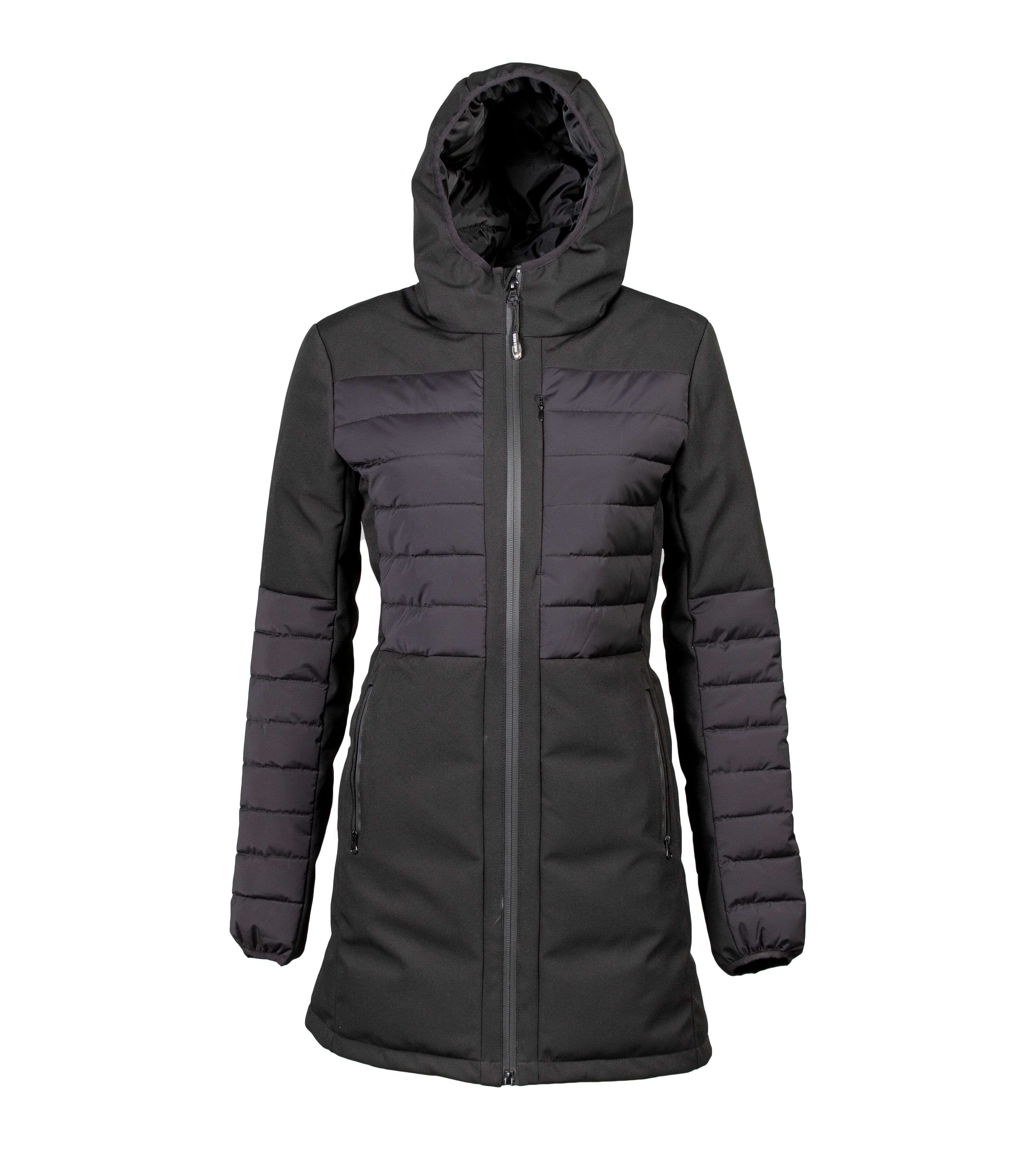 Giubbino in tessuto composito impermeabile- Spalle, parte inferiore del busto, fianchie parte inferiore della manica in softshell 3 strati elasticizzato- Torace e schiena in 92% poliestere - 8% elastancon membrana TPU- Fodera in morbido poliestere 320T- Impermeabilità 3000 mm/H2O- Traspirabilità 1000g/m2/24h- Imbottitura in soft poliestere (effetto piuma)- Cappuccio imbottito con finitura in tessuto elasticizzato- Cerniere antiacqua con taglio laser(con doppio cursore nella versione lady)- Una tasca esterna sul petto con zip invisibile(utilizzabile anche per poter ricamare)- Due ampie tasche esterne con zip- Una tasca interna portafoglio con zip- Tessuto interno a protezione del mento- Tessuto elasticizzato ai polsi- No label