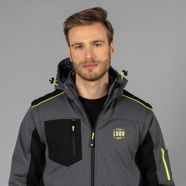 Giubbotto Uomo in Softshell 3 Strati con Cappuccio e Maniche Staccabili con Zip Personalizzato Perfetto come Capo da Lavoro-Losanna