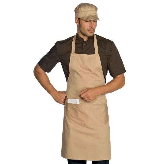 Grembiule con pettorina 70x90 cm, tascone centrale, perfetto per cucina e sala. Ideale per ristorazione, bar, catering e settore alberghiero. Un classico intramontabile del settore Ho.Re.Ca. Robusto, comodo e pratico, è perfetto per chef, camerieri, banconisti e personale di sala.