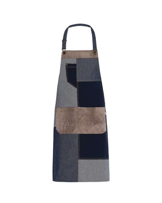 19P01H072 Stile sorprendente per questi grembiuli in denim patchwork blue, sia nella versione uomo che in quella donna. Il tessuto denim usato al rovescio, abbinato a inserti e tasche in alcantara, gli conferiscono un aspetto autentico e contemporaneo. Le cuciture a contrasto e la metalleria in ottone invecchiato illuminano e rendono il capo davvero ricercato. Tipica lallacciatura salopette con tracolla regolabile.