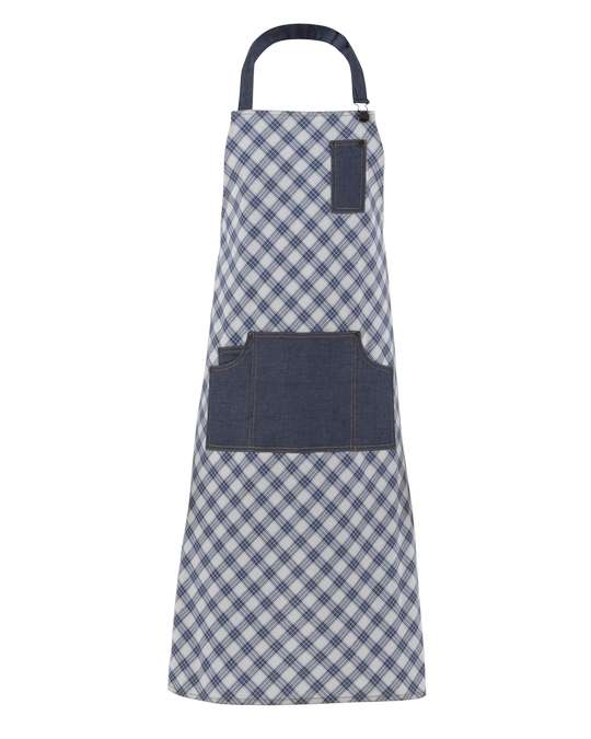 23P01H374 Il grembiule da lavoro con pettorina Douglas è ideale per locali moderni e per ambienti eclettici. È caratterizzato da un’ampia tasca centrale divisa in 3 scomparti, di cui due laterali più piccoli - in cui c’è anche un portapenne - e uno centrale più ampio. Douglas è proposto in diverse fantasie: rigato marrone, tortora, e fantasie scozzesi con tonalità di colore che vanno dal blu al marrone, tutte arricchite da impunture a due aghi in contrasto. I lacci del collo e della vita sono a contrasto e riprendono il colore del filato impunturato. Realizzato in tessuto policotone elasticizzato per coniugare eleganza e comodità, questo grembiule da sala è curato nei minimi dettagli. Un esempio? I rivetti in ottone invecchiato che incorniciano e conferiscono luminosità ad un capo dallo stile inconfondibile.