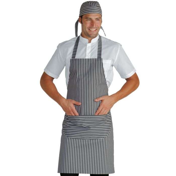 Grembiule con pettorina 70x90 cm modello Londra 12 con tascone centrale. Ideale per cucina, bar, ristoranti, catering, pub ed enoteche. Perfetto come parannanza da lavoro nel settore food.