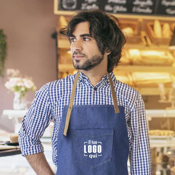 Grembiule di Alta Qualità in Denim Resistente e Lacci Regolabili Personalizzato per Settore Food-ROBER