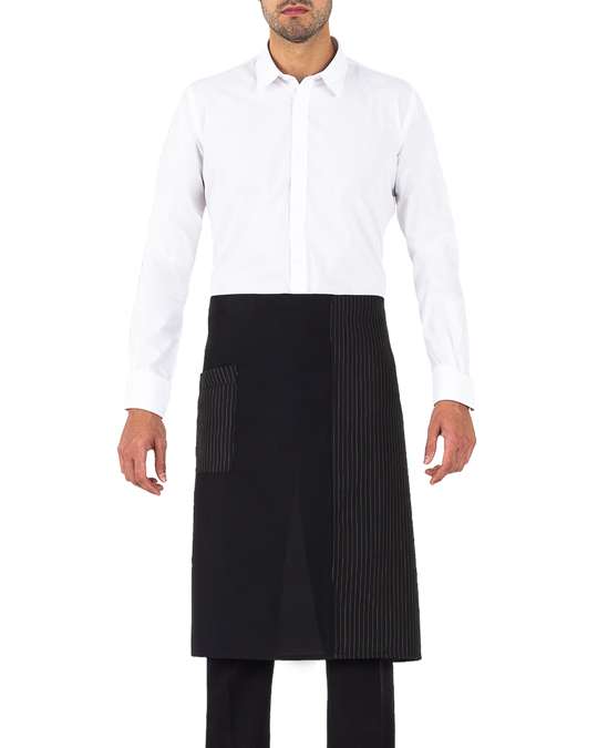 20P01H154 Il grembiule da lavoro unisex Rodano è una variante del grembiule Napoli. Si annoda in vita con i lacci ed è dotato di una comoda tasca sulla parte destra. Presenta un gioco di righe abbinato al tinta unita, in cui la tasca è a contrasto. Disponibile in tre nuove colorazioni: gessato nero, gessato grigio e gessato bordeaux. Caratterizzato da un ottimo rapporto qualità prezzo e valorizzato dalla tecnologia indantrene, è un capo perfetto per tutti i settori.