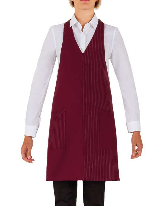 20P01H153 Il grembiule con pettorina Senna è un modello trasversale dall’Ho.Re.Ca. al wellness. Presenta due ampie tasche ed un’allacciatura regolabile, caratterizzata da due bottoni 4 fori in tinto pasta. Le tasche ed i lacci sono ancorati con travette che rinforzano l’assemblaggio degli elementi. Il capo presenta un motivo nella parte sinistra che si ripete in negativo nella parte destra. Disponibile in diversi colori e in molteplici composizioni, da quest’anno anche nelle nuove versioni: gessato nero, gessato grigio e gessato bordeaux. Questo grembiule è caratterizzato da un ottimo rapporto qualità prezzo, valorizzato dalla tecnologia indantrene.