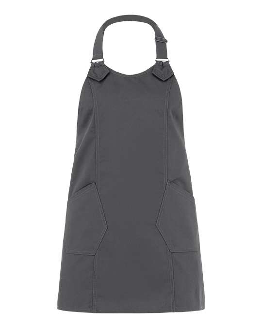 Il grembiule Virginia è realizzato in gabardina classica in poli-cotone, ha un gusto lineare ma di grande impatto, contraddistinto dalle linee geometriche, rimarcate da impunture a due aghi con filato a contrasto. Presenta due tasche, fissate con travette in tono- il laccio del collo è regolabile attraverso due fibbie. Il grembiule Virginia è proposto in sette varianti: nero, blu, grigio, tortora, bordeaux, verde militare e marrone.