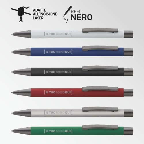 Penna a sfera dal design sobrio e professionale, con meccanismo a scatto e fusto in metallo satinato con elegante finitura opaca. Le minuterie in grigio completano lo stile moderno e minimalista. Dotata di refill nero, perfetta per l’uso quotidiano o come gadget aziendale di classe.