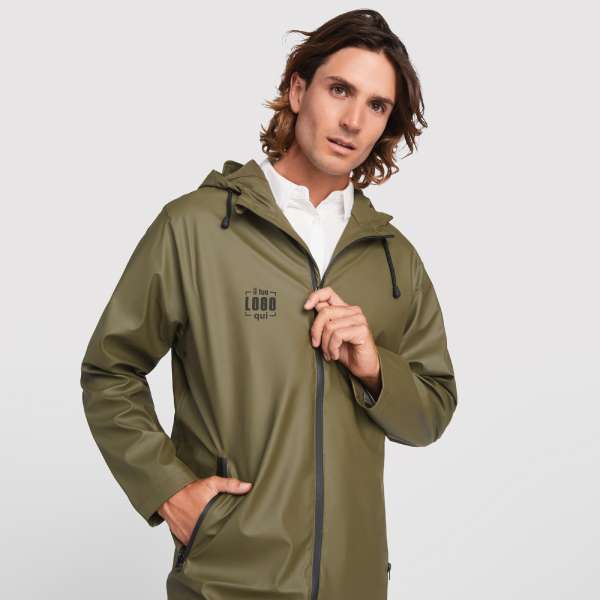 Giacca Uomo Impermeabile da Pioggia con Cappuccio Fisso in Poliestere Personalizzato Perfetto come Articolo Promozionale-Sitka