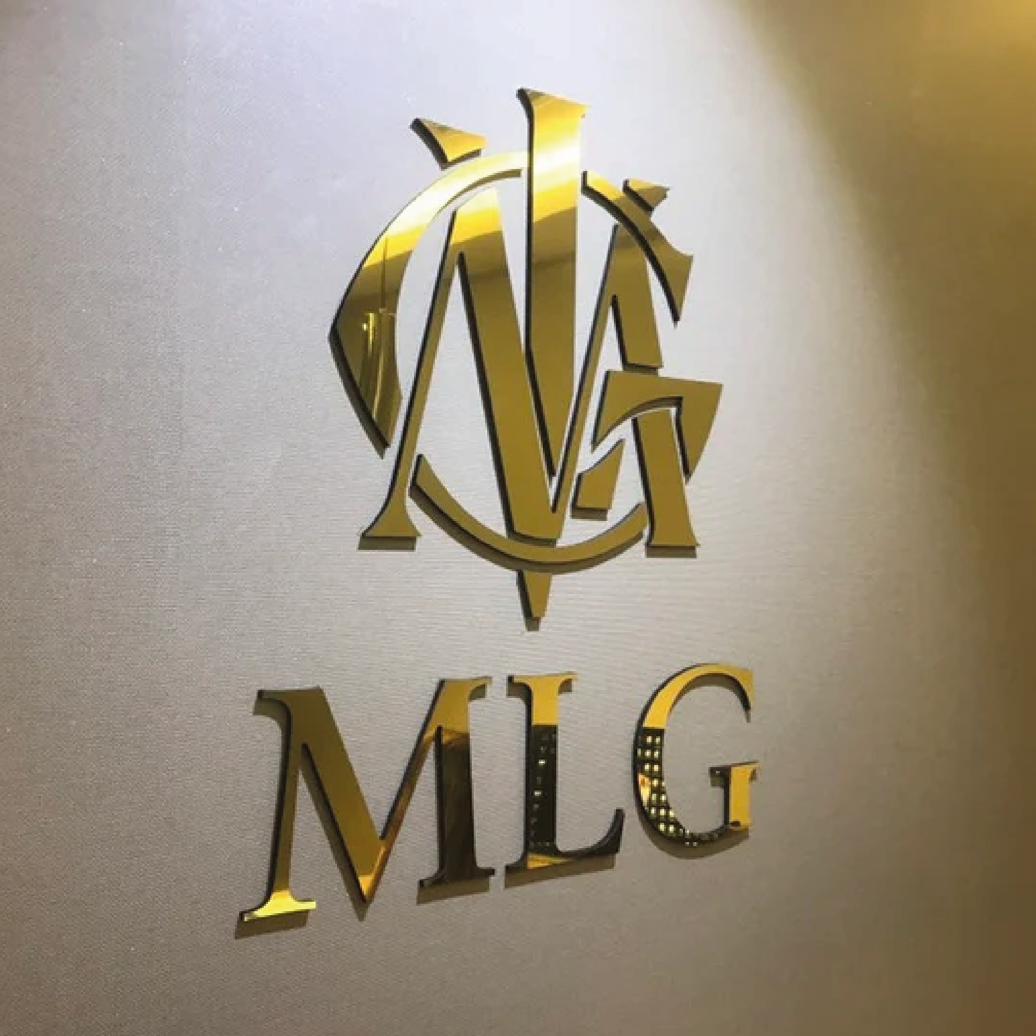 Insegna Interna in Dibond Oro Specchiato con Lettere Sagomate