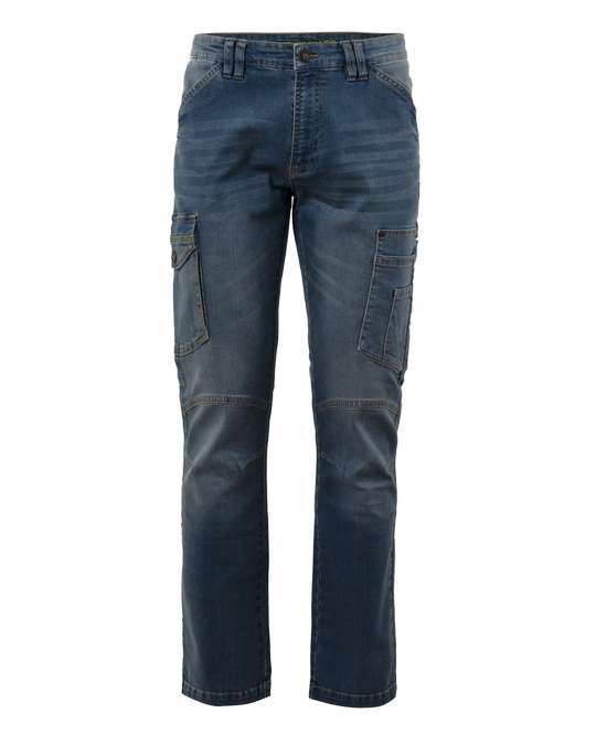 Jeans da lavoro in denim stretch con taglio moderno e dettagli tecnici pensati per il lavoro quotidiano. Dotato di tasche multifunzione, doppi passanti e inserti strategici, unisce estetica e praticità in un capo resistente e confortevole. Ideale per professionisti che cercano uno stile casual ma tecnico.