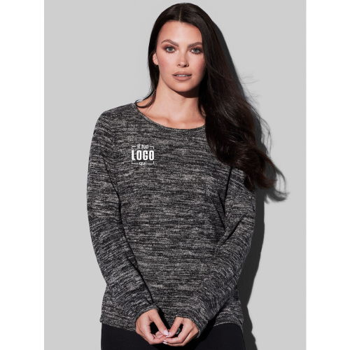 58% poliestere, 37% viscosa, 5% elastane. Pullover manica lunga da donna, cuciture laterali, disponibile in diversi colori melange.