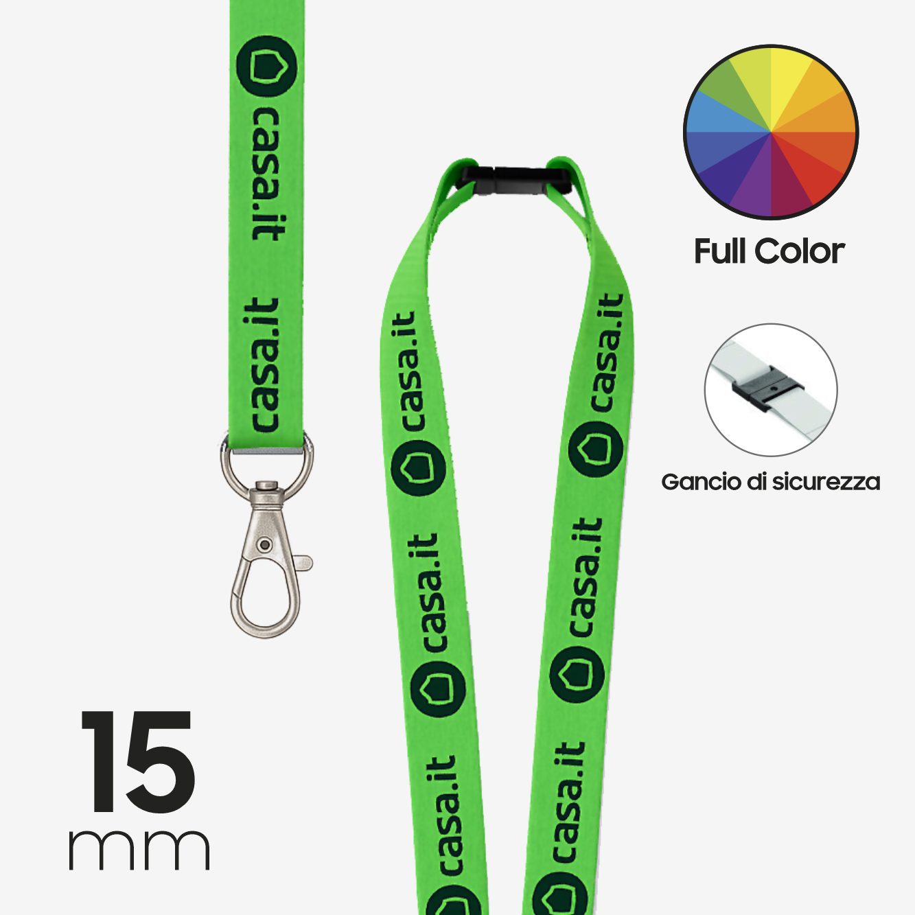 Lanyard Portabadge Personalizzabile su Entrambi i Lati 15 mm in Poliestere