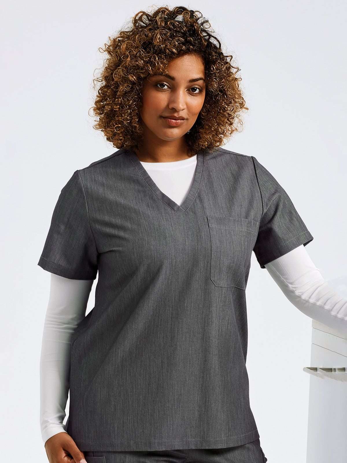 42% Poliestere, 33% Poliestere riciclato, 19% Viscosa, 6% Elastan. Casacca da donna in tessuto traspirante elasticizzato in 4 direzioni per assicurare comfort e libertà di movimento durante tutto il giorno, tessuto resistente, ingualcibile e easy care, taglio moderno con riprese posteriori e spacchetti laterali, scollo a V e taschino singolo sul petto.
