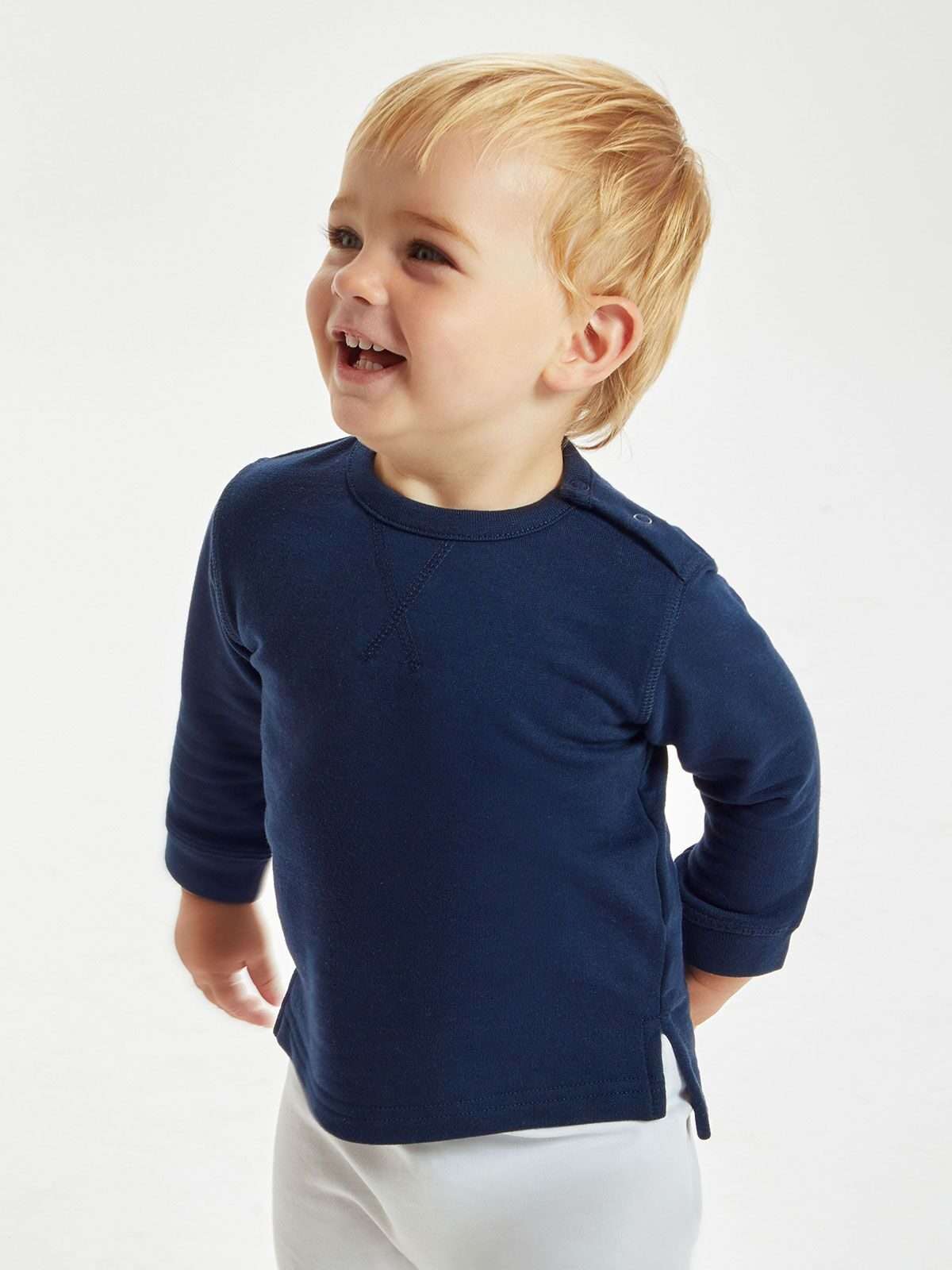 80% cotone, 20% rPET. Felpa girocollo, due bottoni automatici sulla spalla, polsini in costina, spacchetti laterali, parte posteriore leggermente più lunga, etichetta strappabile, struttura con cuciture laterali. Col. HGM: 84% cot. 16% rPET.