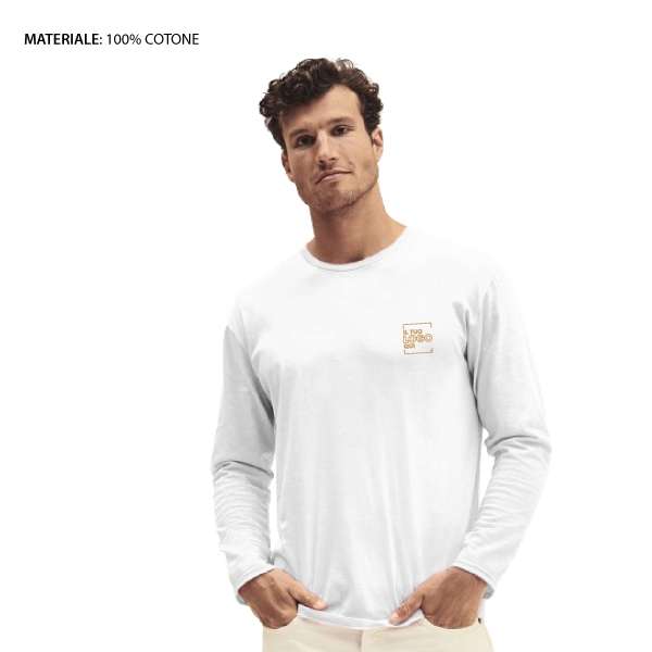Maglia Manica Lunga 100% Cotone Bianca Personalizzata Ideale come Articolo Promozionale - Fruit of the Loom- Iconic Long Sleeve T