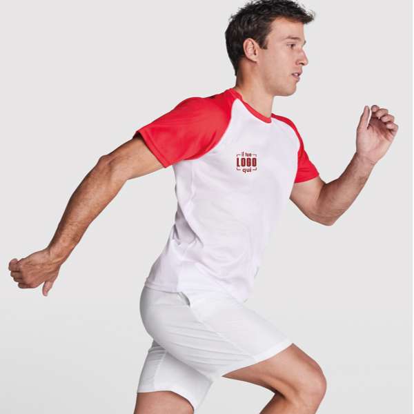 Tessuto tecnico e traspirante. Maniche raglan a contrasto. Girocollo con cuciture rinforzate e coperte a contrasto. Etichetta rimovibile.