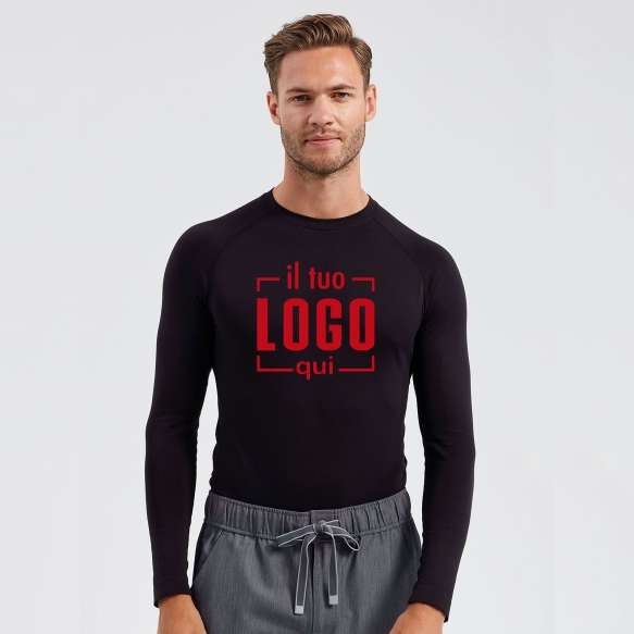 50% nylon riciclato, 50% nylon.. Maglia a maniche lunghe da uomo in tessuto traspirante elasticizzato in 4 direzioni, fresco, da indossare sotto la divisa sanitaria, tessuto resistente, ingualcibile e easy care, l’estratto di menta piperita offre una finitura deodorante naturale, corpo senza cuciture con esclusivo motivo jacquard.