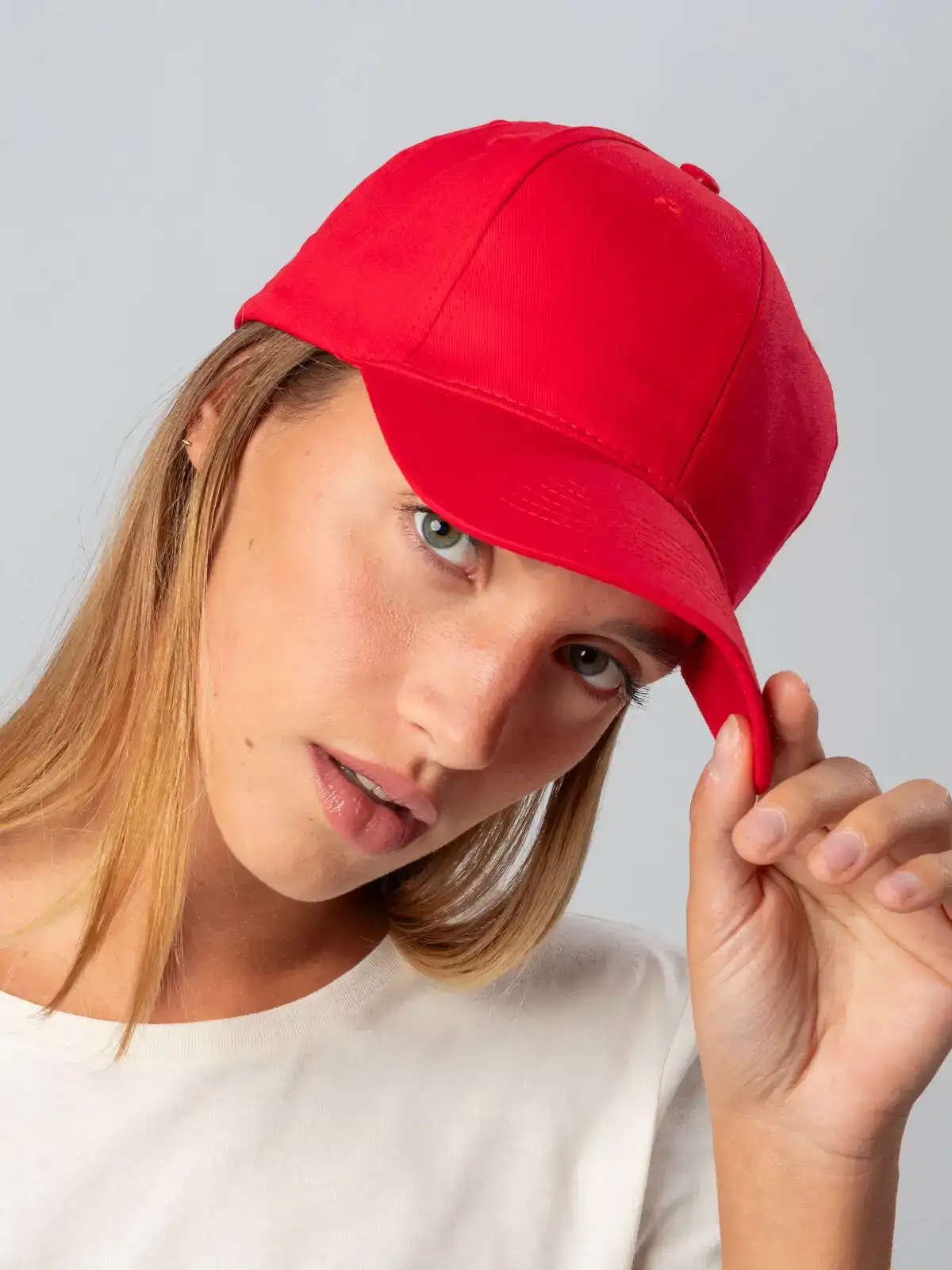100% cotone. Cappellino a 6 pannelli dal design classico e funzionale, perfetto per ogni occasione. Dotato di una chiusura regolabile in velcro, per una vestibilità personalizzata. Fascia anti-sudore in poliestere e occhielli cuciti. Pannello frontale rigido e visiera pre-curvata. Etichetta removibile.