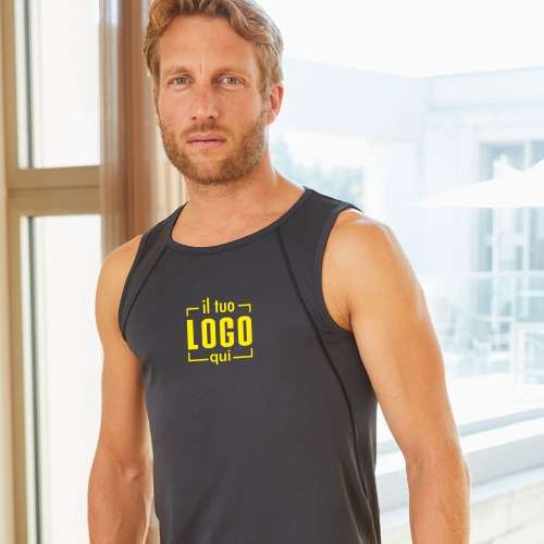 100% poliestere. Canotta uomo per fitness e sport Traspirante, umidità-regolazione e ad asciugatura rapida, leggera e confortevole, Contrasto cuciture piatte sul davanti e sul retro. Tessuto esterno (130 g/m²).