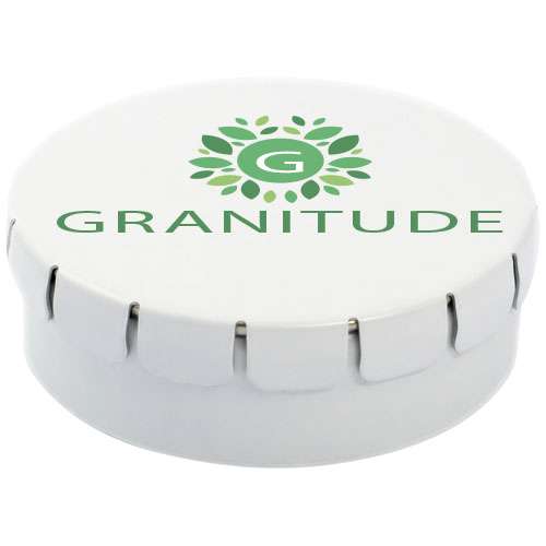 Rinfresca il tuo brand con queste mentine extra forti confezionate in una pratica scatolina di latta con apertura a scatto. Un'idea regalo perfetta e un gadget promozionale utile, personalizzabile con stampa digitale a colori sul coperchio. Disponibile in diversi colori e con una varietà di gusti tra cui scegliere, per adattarsi a ogni stile ed evento.