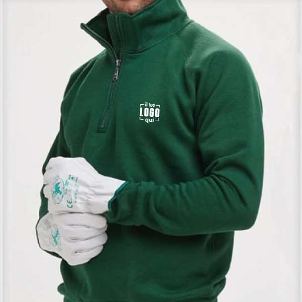 Felpa Uomo a Mezza Zip Garzata in Cotone e Poliestere, Morbida e Comoda Personalizzata da Lavoro- PAYPER-MIAMI+