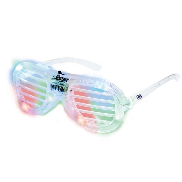 Occhiali luminosi con LED, montatura trasparente e lenti a griglia, ideali per feste e celebrazioni.Includono 6 luci LED integrate, alimentate da batterie a pulsante (incluse), con opzioni di illuminazione in modalità fissa o lampeggiante. Presentano un pratico pulsante di accensione/spegnimento.