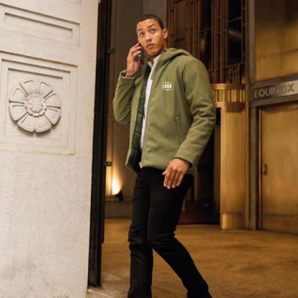 Giubbotto Uomo in Soft Shell Imbottito, Cappuccio Fisso, Caldo, Anti Vento Personalizzato-OREGON-PAYPER