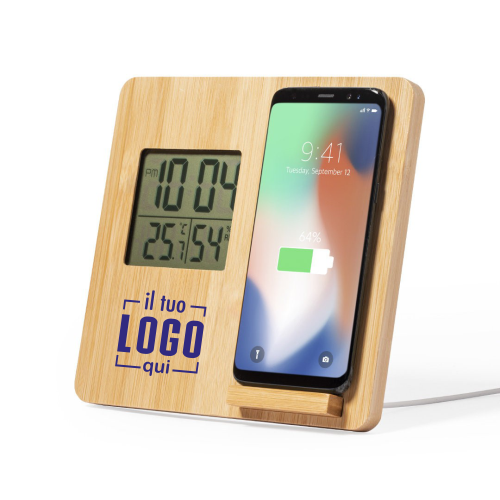 Orologio da Tavolo in Bambù con Caricatore Wireless Integrato Personalizzato Perfetto come Idea Regalo