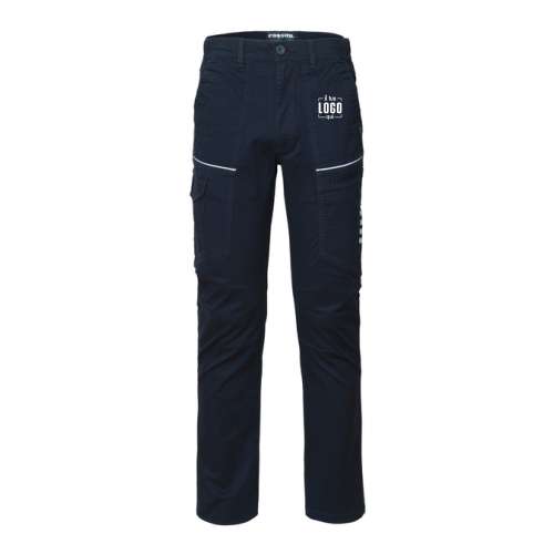 Pantalone da lavoro multitasca invernale in cotone twill elasticizzato, con elastici laterali e passanti in vita, chiusura con zip e bottone. Due tasche anteriori applicate a taglio classico con inserto di rinforzo a rilievo e fodera logata, ulteriore tasca davanti nella parte inferiore e tasca laterale porta metro sulla gamba sinistra, tasca laterale chiusa con aletta e velcro sulla gamba destra, due tasche posteriori applicate. Dettagli di tessuto a spina di pesce sulle tasche davanti e vicino al porta metro, triple cuciture al cavallo, pences alle ginocchia per maggior comfort. Profili orizzontali nel taglio delle tasche anteriori e 4 bande su tasca porta metro in tessuto rifrangente. ***Fino alla XXXL solo per 1C Camouflage***