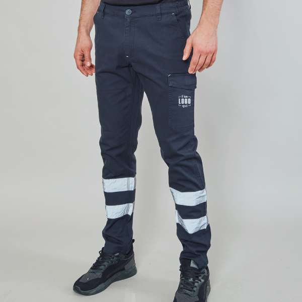 PANTALONE MULTITASCHE ELASTICIZZATO98% COTONE – 2% ELASTAN- Tessuto prelavato- Cerniera YKK- Due tasche anteriori- Una tasca laterale con velcro- Una tasca posteriore portametro o portautensili- Una tasca posteriore con velcro- Due bande rifrangenti h. cm 5- Triple cuciture- Impunture di rinforzo in contrasto- Elastici in vita e passanti maggiorati- Sacchetto con bottone di scorta